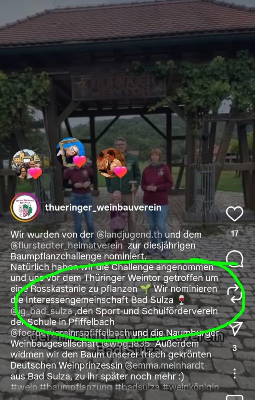 Am 27.9.2025 wurden wir vom Thüringer Weinbauverein zur Baumpflanzchallenge nominiert.