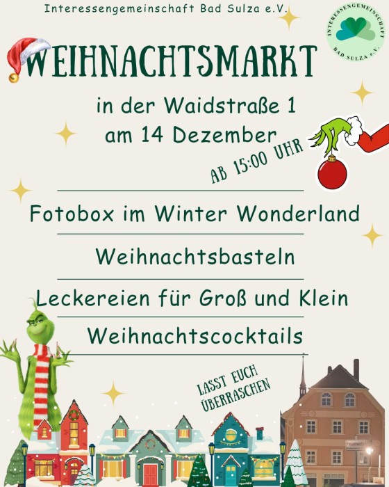 Traditionell findet der Bad Sulzaer Weihnachtsmarkt immer am 3. Samstag im Dezember statt.