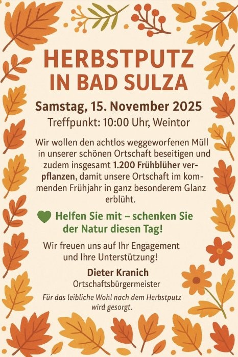 Wir wollen den achtlos weggeworfenen Müll in unserer schönen Ortschaft beseitigen und zudem insgesamt 1.200 Frühblüher verpflanzen, damit unsere Ortschaft im kommenden Frühjahr in ganz besonderem Glanz erblüht.